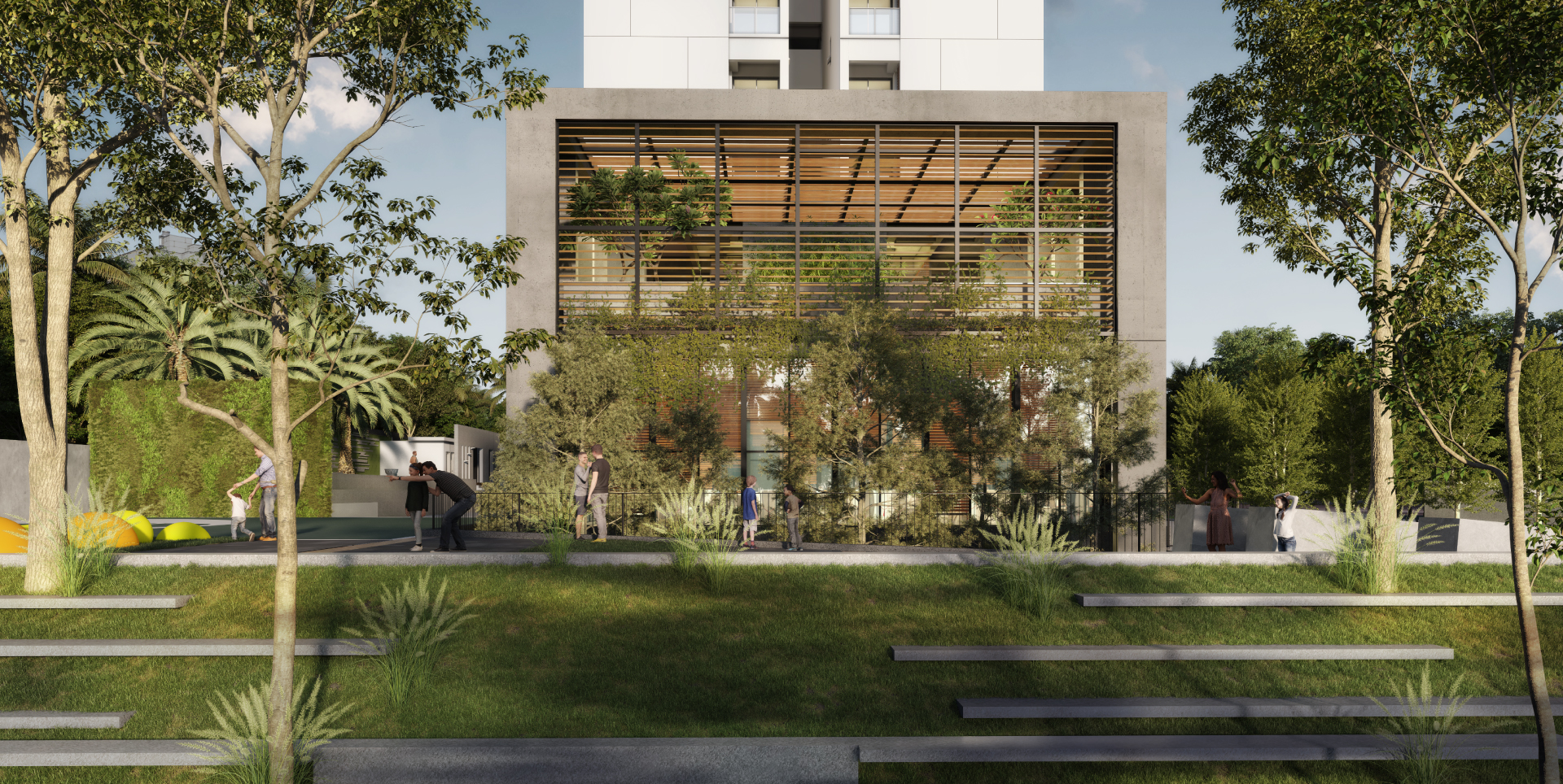 | LANDSCAPED GARDENS | KIDS PLAY AREA | RETAIL SPACES | PARTY AREA |