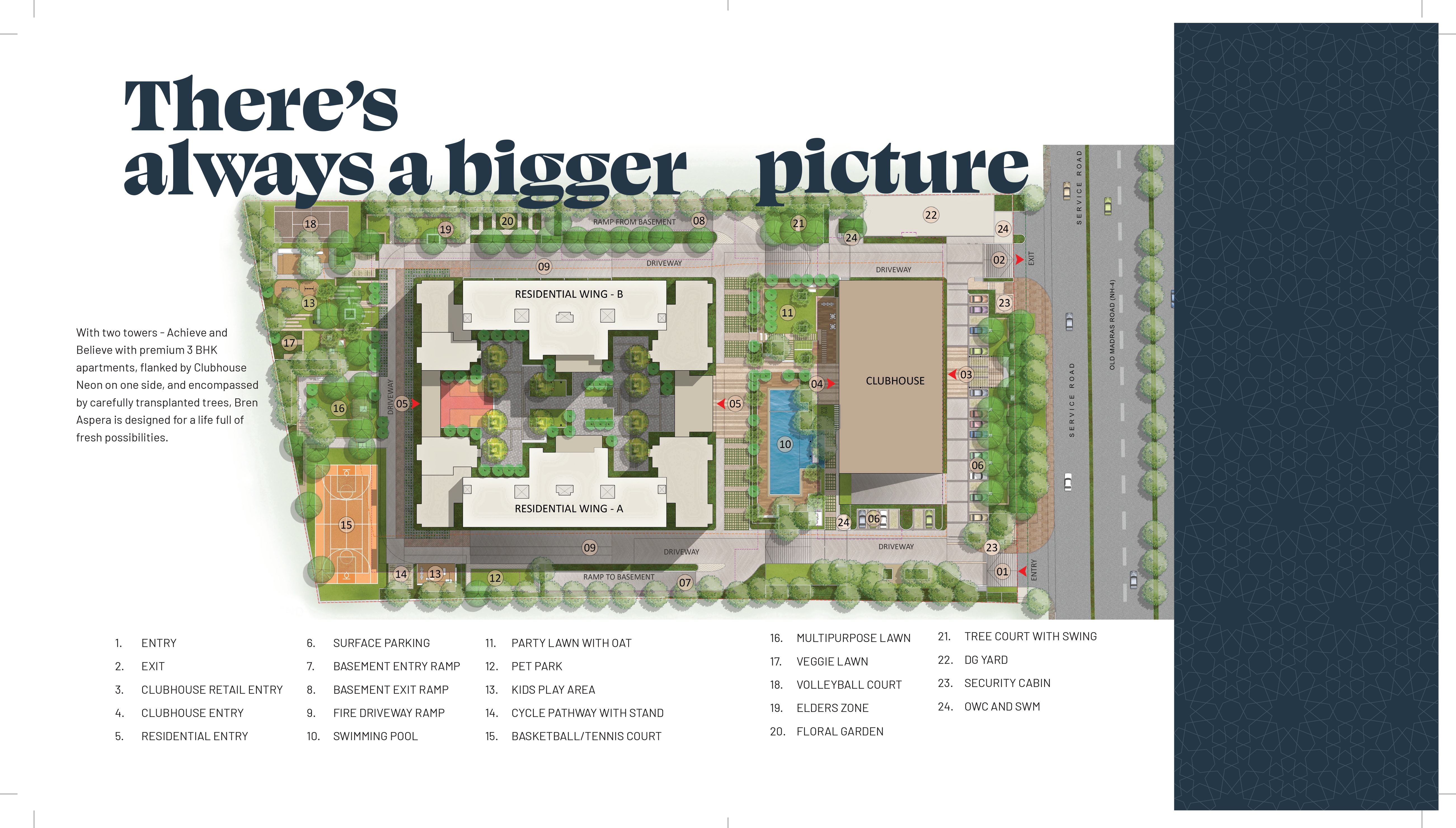 Bren Aspera is not just about living; it’s about thriving. The location on Old Madras Road ensures excellent connectivity to key parts of Bangalore via the Outer Ring Road, Whitefield, KR Puram, and the upcoming Metro Phase 2. Proximity to employment zones like ITPL and Manyata Tech Park makes it an ideal choice for working professionals.