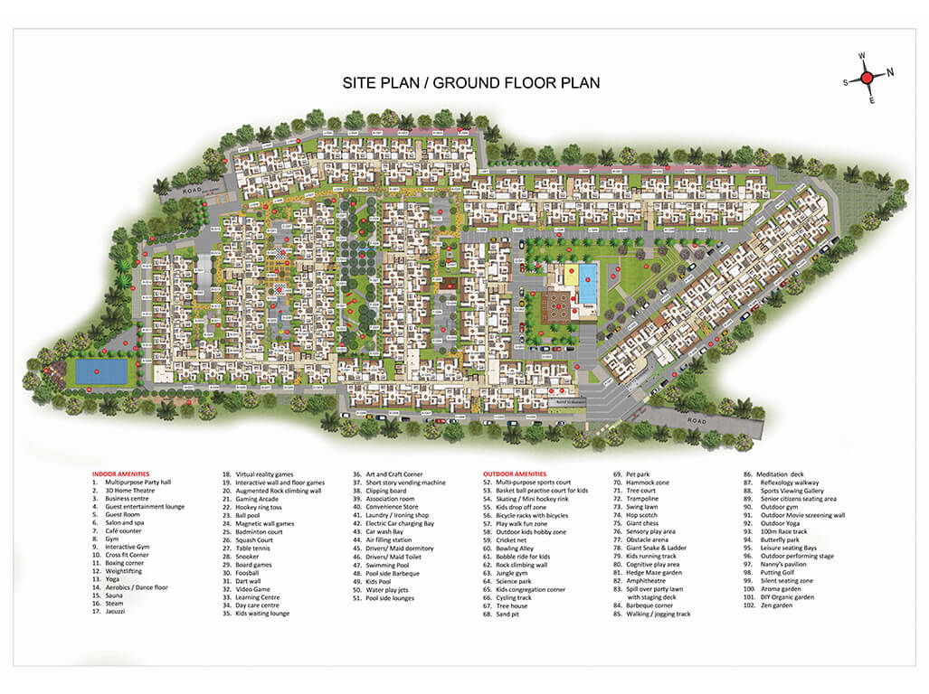 | LANDSCAPED GARDEN | AMPHI THEATRE | HEALTH CENTER | MULTI PURPOSE PARTY AREA |