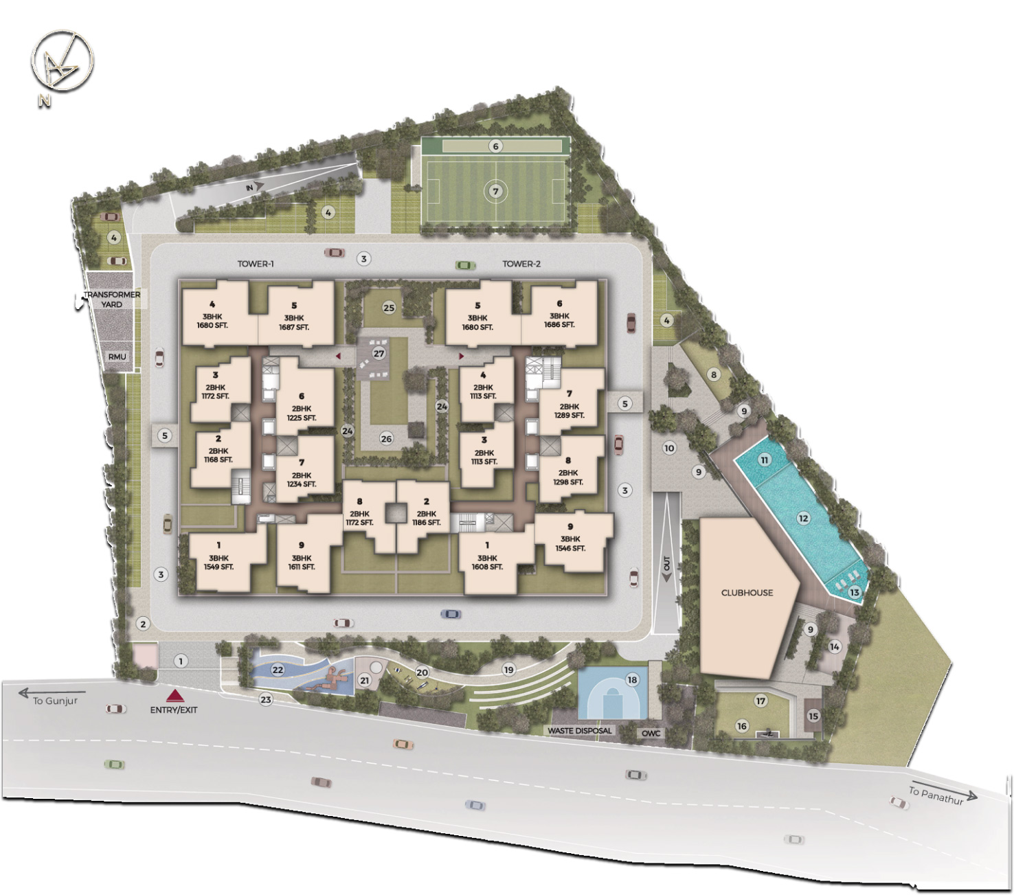 | Towers & Blocks | 2 Towers 1 B + G + 14 FLOORS |