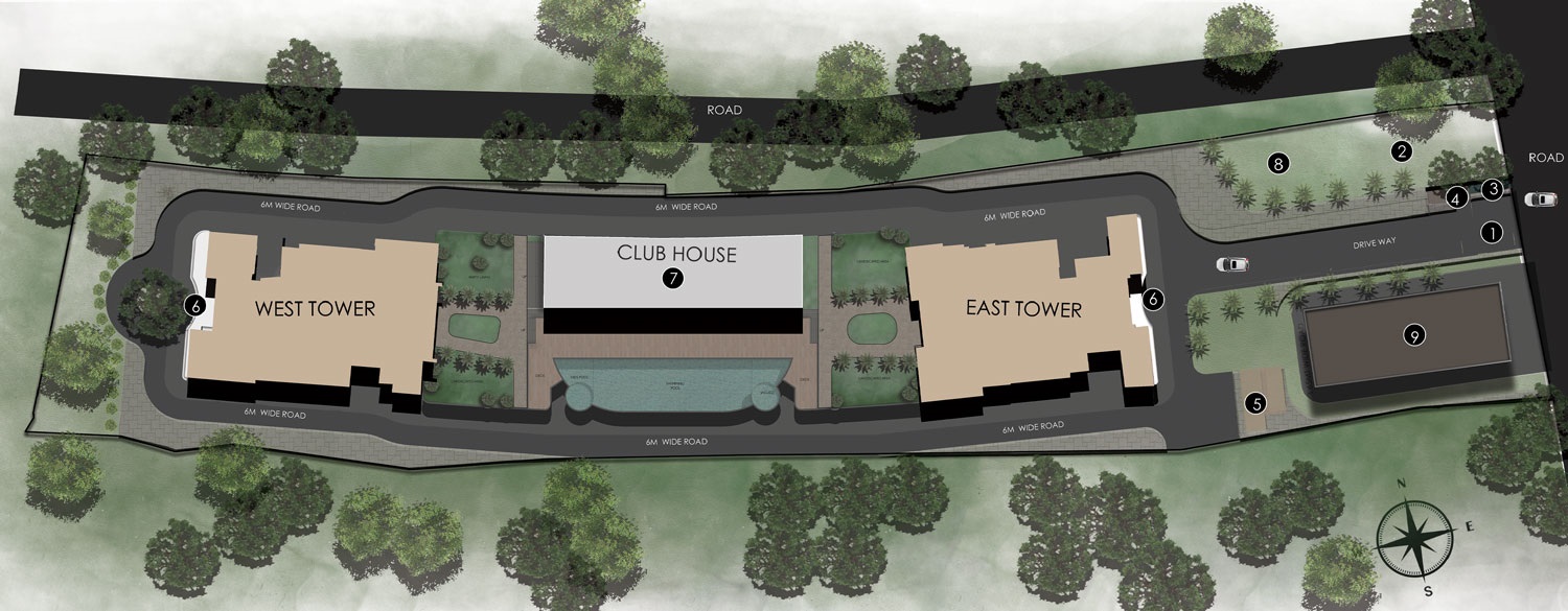 | SWIMMING POOL | JOGGING TRACK | SPORTS COURTS | KIDS PLAY AREA |