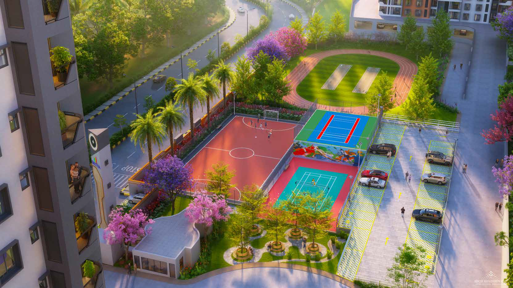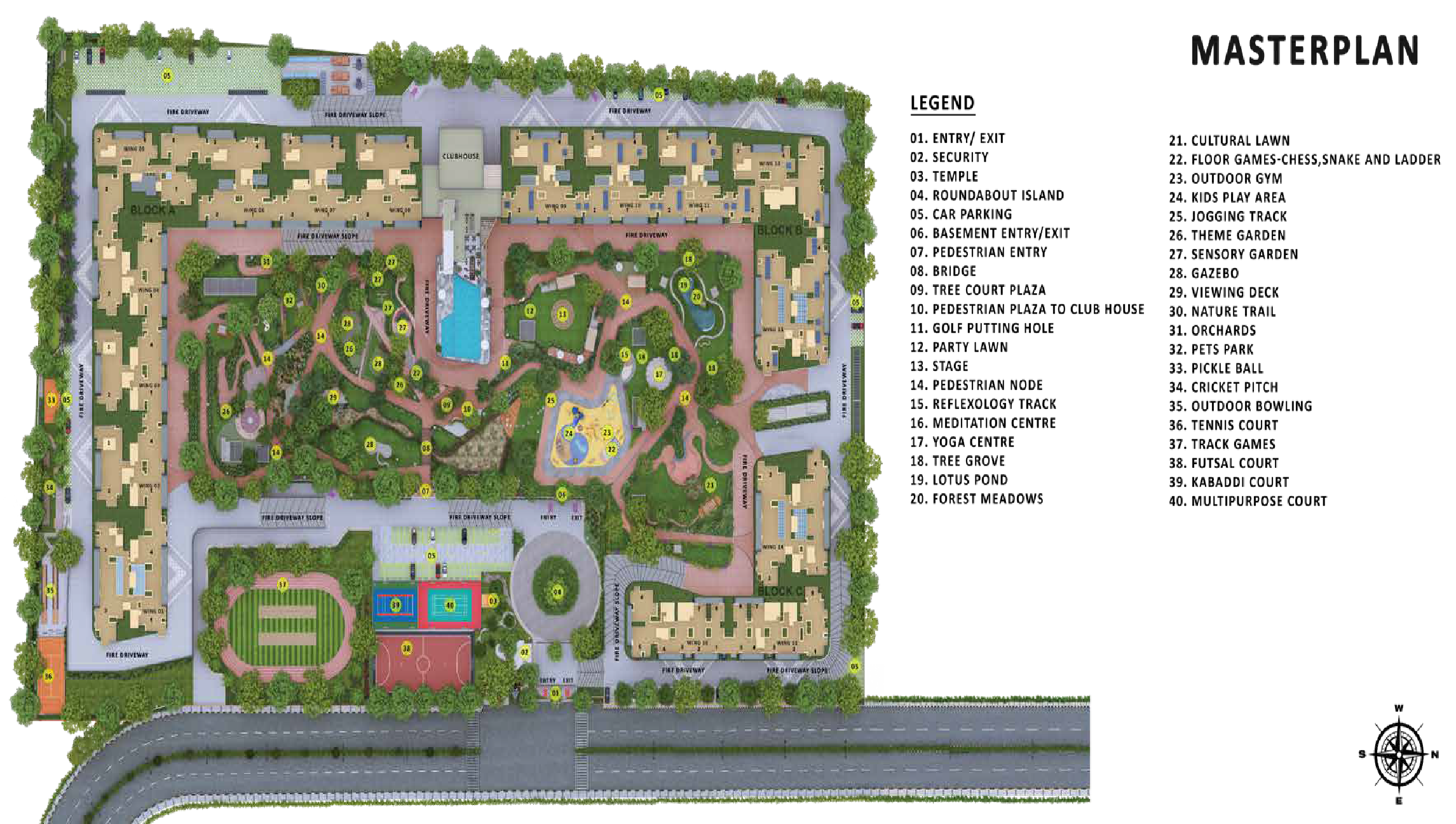 | YOGA AREA | JOGGING PARK | MULTIPLE SPORTS COURTS | AMPHI THEATRE |
