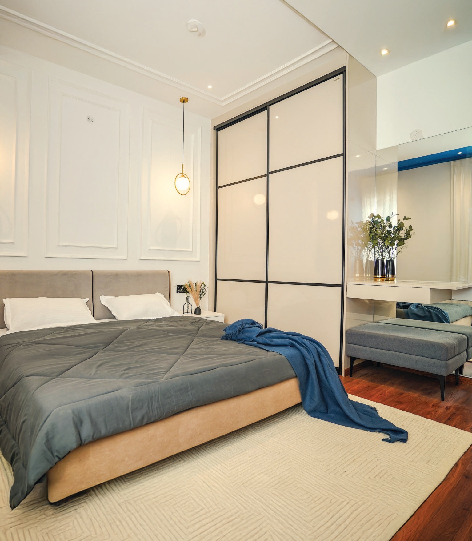 | DOORS | Main Door: Engineered solid core shutter, 40mm thick, veneered on both sides with stainless steel fixtures. Inside Bedroom Doors: Engineered hollow core shutter, thickness between 32mm to 38mm, laminated on both sides with stainless steel fixtures. |