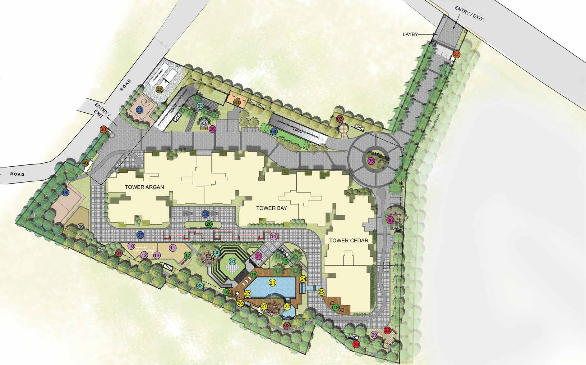 | KIDS PLAY AREA | GAZEBOS | JOGGING TRACK | SPORTS COURTS |
